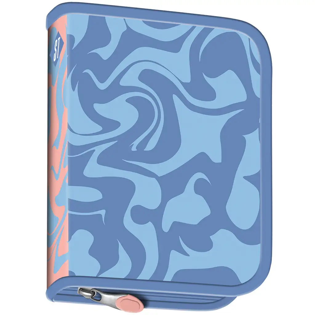 St.Right Romantic Horse rozkládací penál je snem každého dítěte, které miluje koně! Na přední straně penálu je nádherný, realistický portrét koně, který doplňují romantické modré a růžové květiny a módní modro-růžový vzor na pozadí. Zadní strana je zdobená jemným vlnkovaným motivem, který školnímu doplňku dodává stylový a elegantní vzhled.