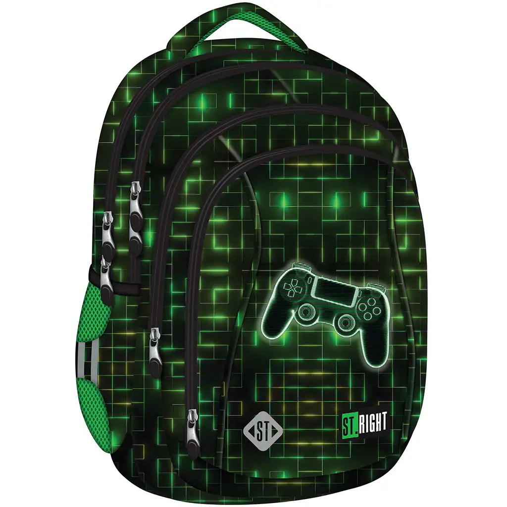 St.Right zeleno-černý školní batoh s motivem herního ovladače BP04 43x32x20 cm