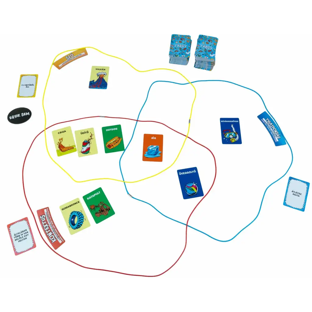 Halmazállapot je vtipná, barevná a zaručeně smíchem naplněná párty hra, ve které je v centru pozornosti kreativita, asociační schopnosti a logika. Ve hře máš k dispozici tři množiny označené barevnými kruhy a cílem je přijít na to, podle jakého pravidla se do určené množiny dostaly konkrétní předměty. Pozor však – kruhy se překrývají a tato překrytí mohou skrývat další, složitější pravidla!