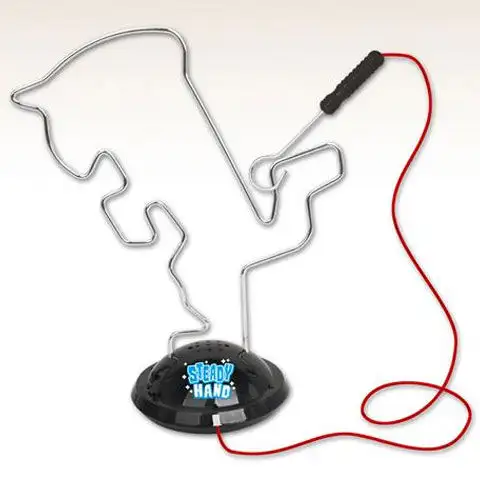 Vyzkoušej se, jak jsi šikovný, jak pevnou máš ruku a jak přesně dokážeš sledovat drát ve tvaru býka s tímto speciálním dovednostním hrou. Pravidla hry Steady Hand jsou velmi jednoduchá, stačí vložit do základny dvě tužkové baterie AAA a zapnout. Poté musíš rukou s tyčí sledovat tvar vytvořený z drátu tak, aby kroužek ani jednou nedotkl drátu. Jakmile uděláš chybu, hra okamžitě signalizuje světlem a zvukem. Hra skvěle rozvíjí koordinaci oko-ruka a jemnou motoriku.