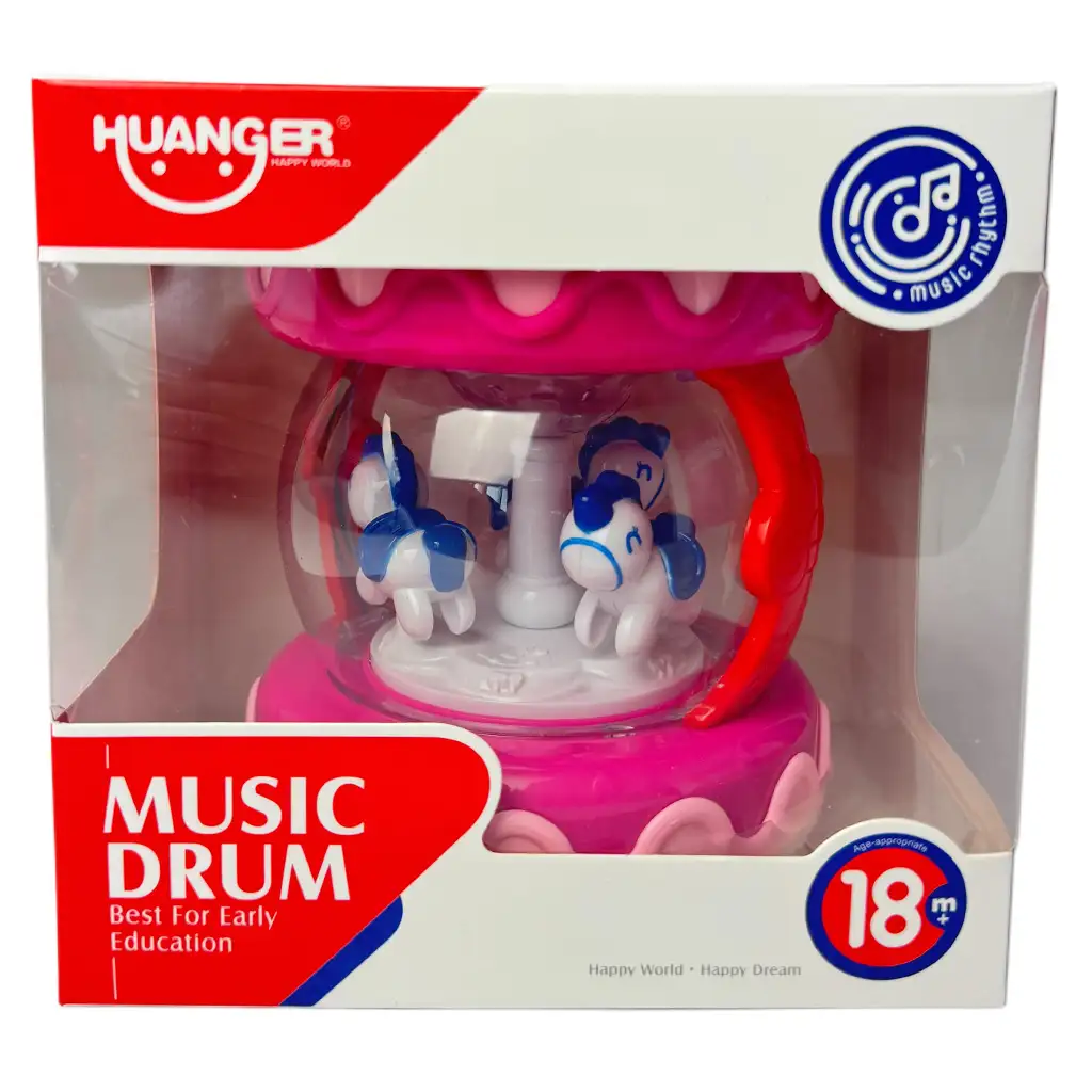 Pořiďte svému dítěti růžový kolotoč, který disponuje světelnými a zvukovými efekty a zaručuje skvělý zážitek ze hry již od půldruhého roku věku. Hračka neobsahuje žádné malé díly a je vyrobena ze 100% nezávadného plastu. Kolotoč je umístěn v průhledném plastovém krytu, uvnitř kterého se dokola otáčejí poníci různých barev. Kolotoč je vybaven světelnými a zvukovými efekty a pomocí tlačítek na horní části lze přehrávat různé melodie pro vaše dítě; kolotoč může sloužit i jako noční světlo.