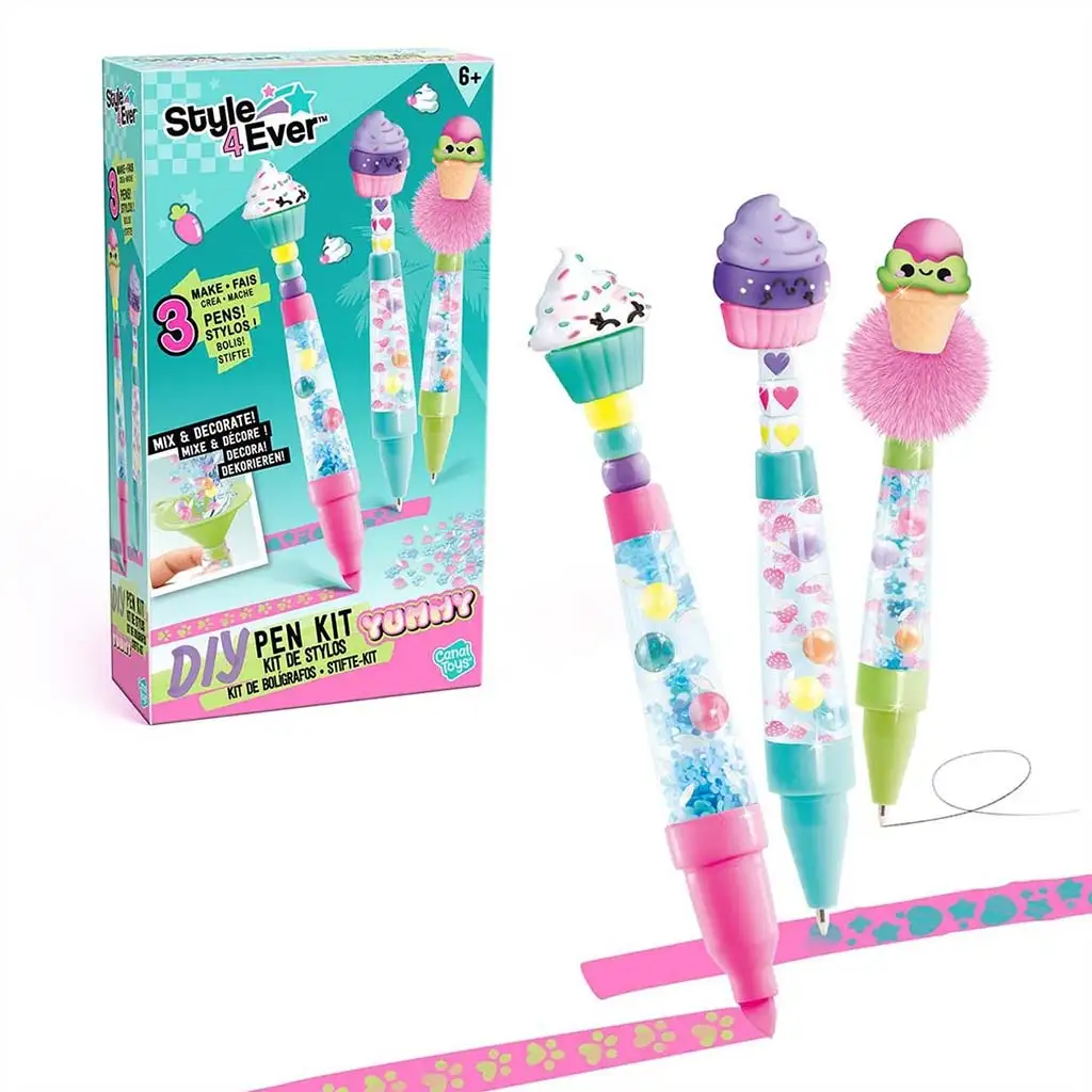 Uvolněte kreativitu svého dítěte se Style 4 Ever DIY Vytvoř si vlastní sadu per, která není jen zábavná, ale také rozvíjející aktivita v jednom! Tato kouzelná sada umožňuje dětem vytvořit si vlastní originální pera s dekoracemi s roztomilými zvířátky nebo motivy sladkostí. Sada obsahuje všechny potřebné prvky k výrobě tří plně přizpůsobitelných per, včetně barevných korálků, třpytek, chlupatých ozdob a speciálních zakončení per, například s motivem kočičí hlavy, zmrzliny nebo tlapky.