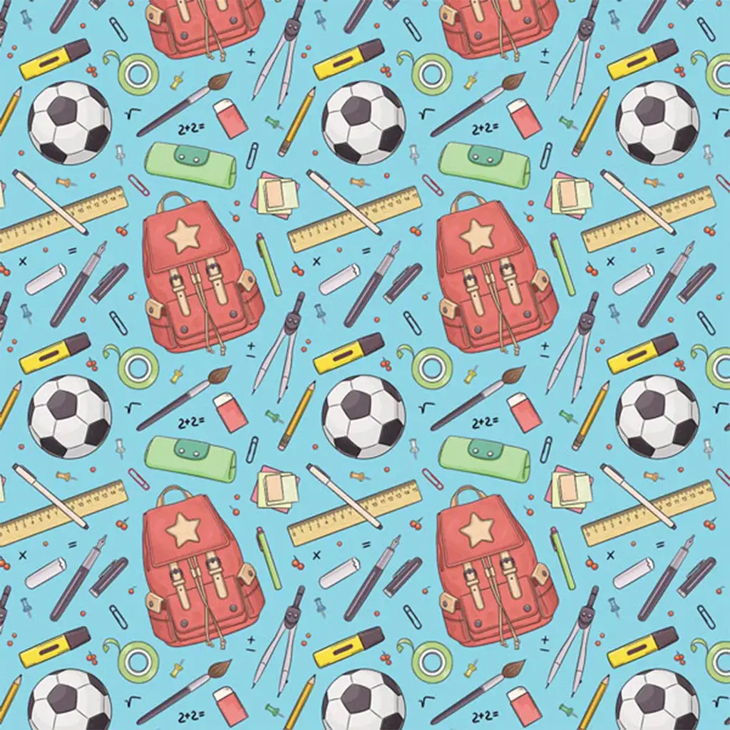Ručně kreslený efekt s motivem fotbalového míče a školních pomůcek
