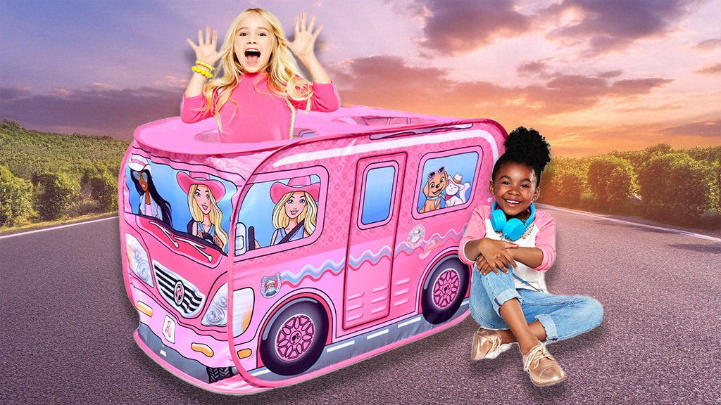Je čas, aby se fanoušci Barbie vydali na imaginární cesty s nejnovější hračkou od Sunny Days Entertainment. Barbie Pop-Up Cowgirl Camper je stan ve tvaru vozidla, na kterém jsou vyobrazeny Barbie, její přátelé, zvířátka a westernové motivy. Tato hračka s tématem westernového karavanu má dva otvory na střeše a snadno přístupné dveře vzadu, takže děti mohou jednoduše vcházet a vycházet, zatímco objevují nová dobrodružství. Tento stan nejen podporuje kreativní hru, ale také dává dětem možnost vytvořit si vlastní malý svět, kde si mohou volně hrát, snít a společně s přáteli zažívat vzrušení světa Barbie.