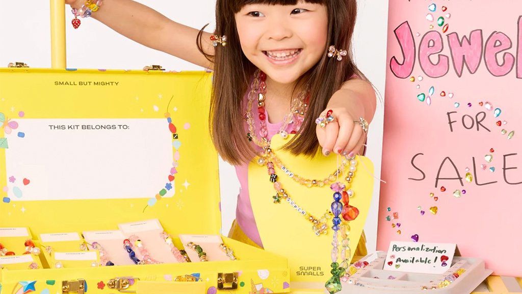 Super Smalls je módní a doplňková značka pro děti, kterou založila Maria Dueñas Jacobs, bývalá redaktorka módního časopisu. Mezi zvláštnosti značky patří kouzelné sady, dětské vysoké podpatky a šperky (často s Disney tématikou). Jejich nejnovějším produktem je Super Entrepreneur Bead Kit, který obsahuje nejen materiály potřebné k výrobě nádherných kouzelných náramků a náhrdelníků, ale také nástroje, které dětem umožňují prodávat své vlastní výrobky!Sada obsahuje více než 630 korálků, takže je to vrchol korálkové mánie. Zdroj: Super Smalls
