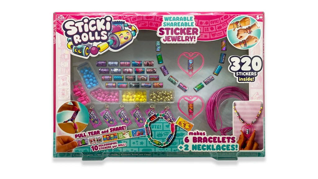 Představujeme Sticki Rolls, první nositelné, sdílené nálepky náramky! Už žádné potřeby pro nálepky: přeměňte zábavu sdílení nálepek na módní doplňky s pomocí Sticki Rolls. Každý náramek Sticki Band obsahuje 5 rolí nálepek, každá s 10 unikátními, Kawaii tématickými designy, takže je snadné je vytahovat, otáčet a lepit. Obsahuje také dva další MYSTERY REVEAL Sticki, které činí používání ještě vzrušujícím. Tyto náramky nejsou jen zábavné, ale i stylové, a jsou ideální pro sdílení s přáteli nebo doplnění vlastního vzhledu. Sticki Rolls posouvá sbírání a sdílení nálepek na novou úroveň, zatímco poskytuje módní a praktický doplněk pro všechny věkové kategorie.