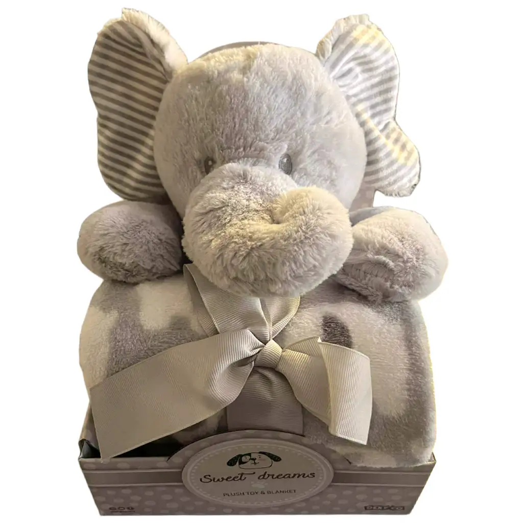 SweetDreams: Přikrývka a plyšový slon v šedé barvě