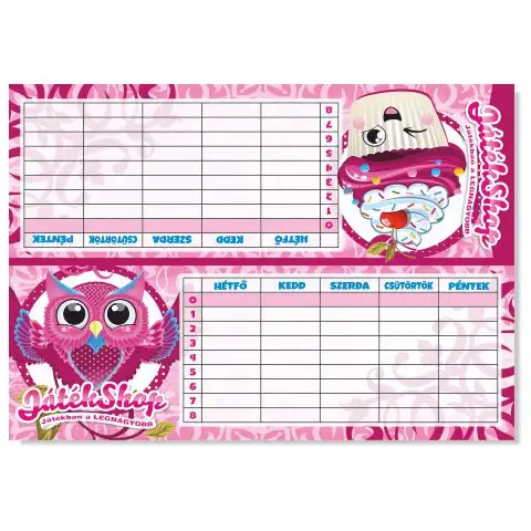 S tímto roztomilým dívčím diářem s růžovou sovou a figurkou Cupcake můžeš své školní vybavení doplnit o opravdový skvost. V diáři zdobeném růžovou sovou a figurkou Cupcake si můžeš zapsat hodiny od A do B týdne od nuly až do osmi. Na zadní straně najdeš spoustu užitečných věcí. Při učení ti pomůže násobilka a abeceda, ale velký užitek ti přinese i úhloměr a pravítko. Až budeš s učením hotový, můžeš začít hrát zvláštní hru Kdo se směje naposled, kterou dělají ještě vzrušující miny.
