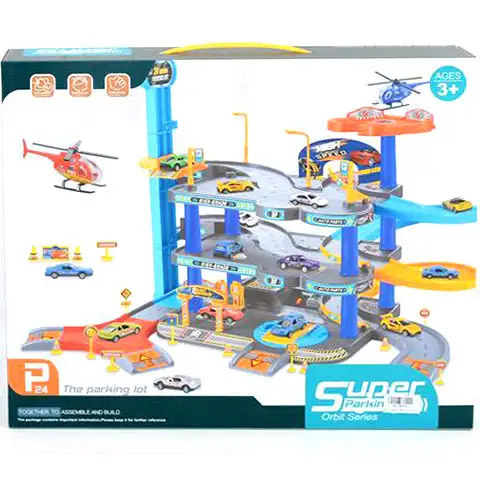 Tuto skvělou třípatrovou plastovou parkovací budovu oživují nálepky na kolejích a různé možnosti, navíc v balení najdete dopravní kužely a značky, které hru pro děti ještě více oživují. Malá auta jezdí nahoru a dolů mezi různými patry, ale mohou také využít výtah, aby se dostali na nejvyšší patro. V parkovací budově je místo nejen pro auta, protože na nejvyšším místě byla vybudována i plošina pro přistání helikoptéry. V sadě najdete helikoptéru a dvě malá auta, takže hra může začít hned po rozbalení.