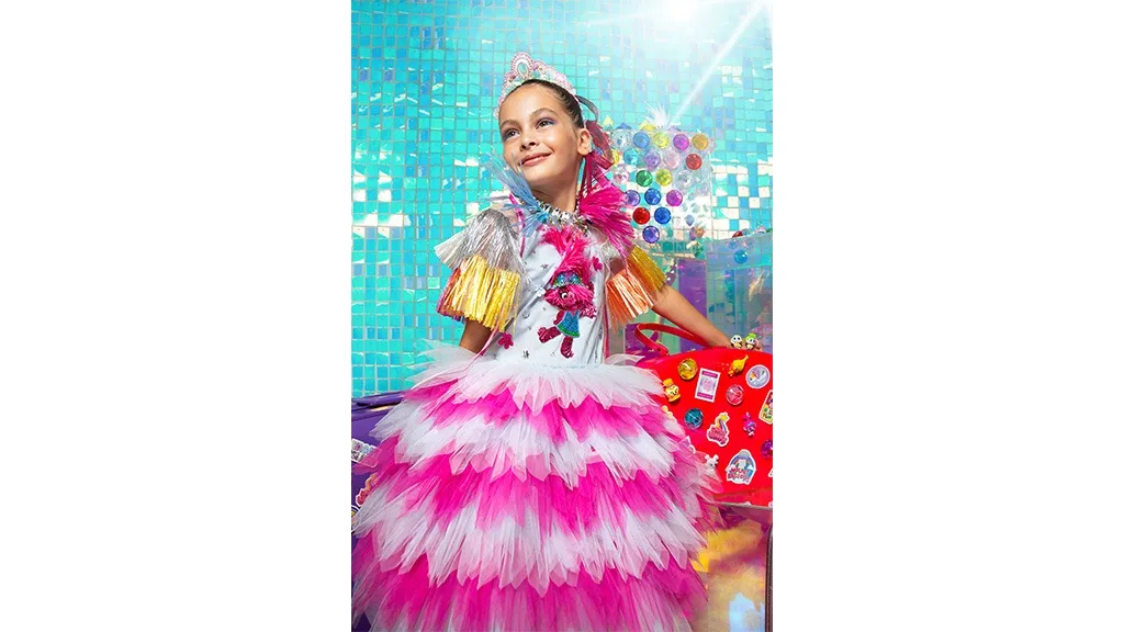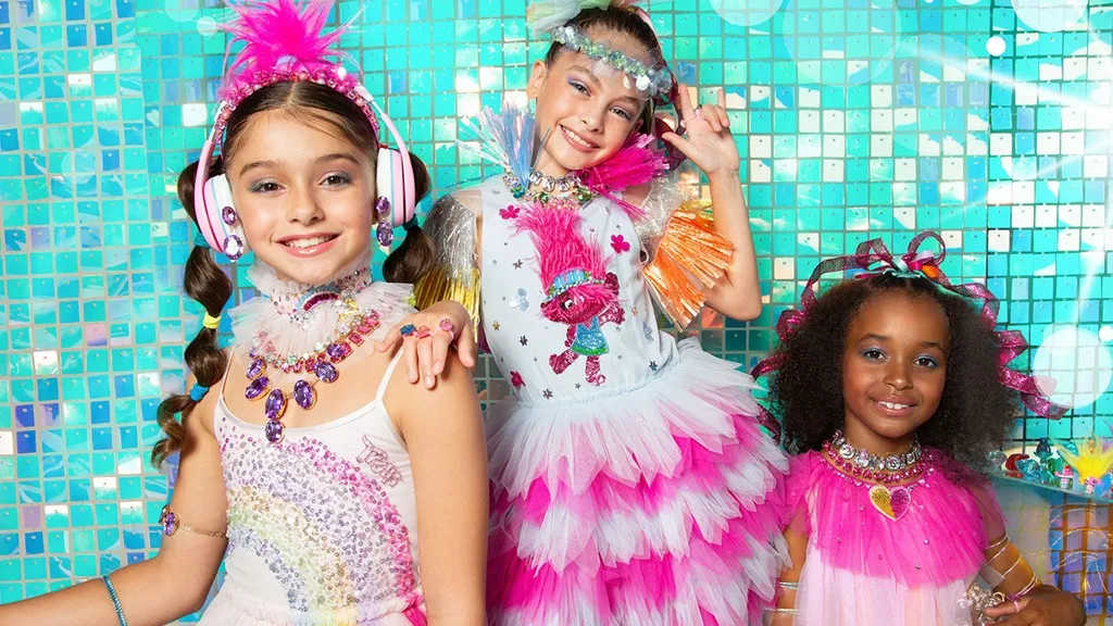 Trolls Band Together, zatímco nosí kousky z 15dílné kolekce oblečení Tutu Du Monde. Rodiny mohou nakupovat oblečení, doplňky a mnoho dalšího výhradně na webu tutudumonde.com.