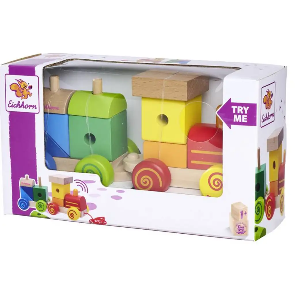 Tahací barevný dřevěný vláček se stavebními kostkami - Eichhorn
