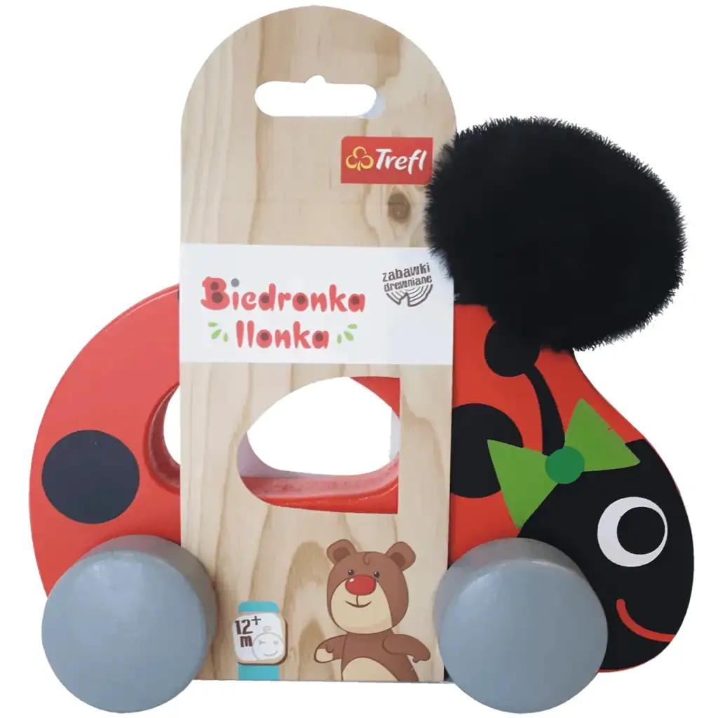 Tahací dřevěná hračka beruška na kolečkách - TreflTahací dřevěná hračka beruška na kolečkách - Trefl