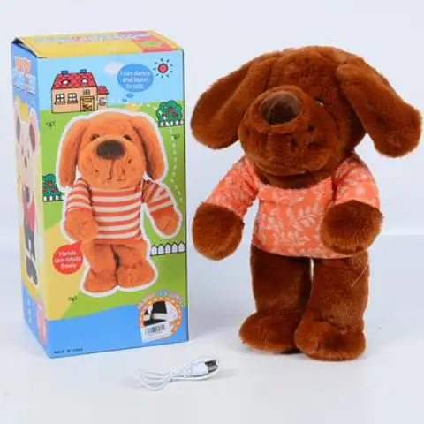 Pokud chceme pro naše dítě, nebo dokonce pro sebe, opravdu zábavnou hračku, pak tento 30 cm vysoký plyšový pejsek určitě zaujme. Hračka se zapnutím začne veselým tancem a přitom hraje hudba. Součástí sady je také USB nabíječka, kterou lze dobít vestavěný akumulátor. Materiál hračky je měkký plyš, ve kterém je umístěn pohyblivý mechanismus. Během tance se pejskovi hýbou ruce, nohy a hlava.