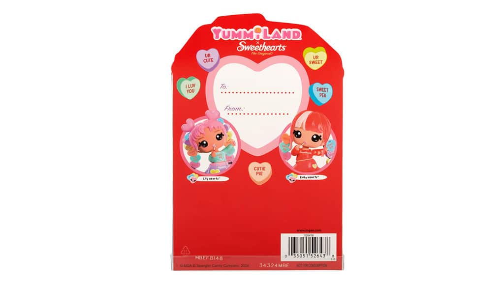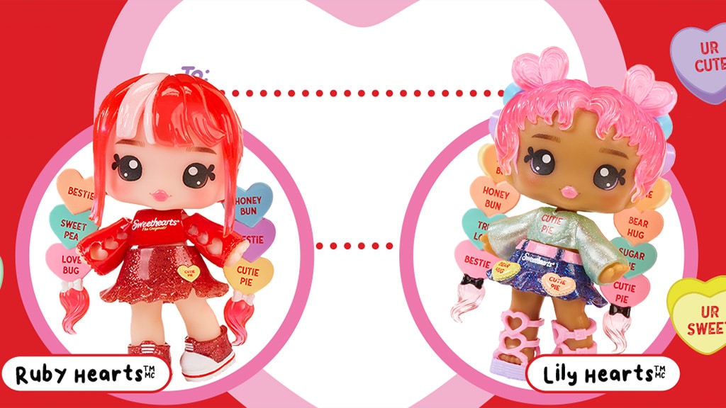 Tyto panenky jsou ještě sladší než ikonické srdíčkové bonbóny! Populární valentýnské dobroty vstupují do světa Yummiland se dvěma limitovanými edicemi panenek, které se pyšní účesy a oblečením inspirovaným Sweethearts. Letos na Valentýna mohou děti říci, že Buď můj a Jsem tvůj panenkám Ruby Hearts a Lily Hearts.
