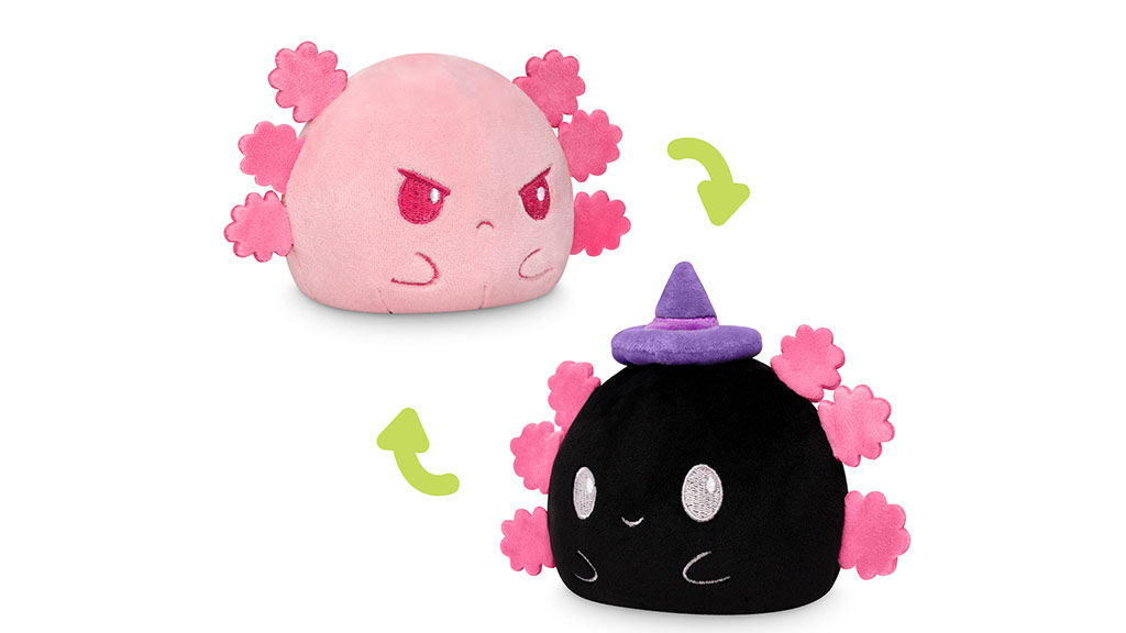Dostanou děti trik nebo dárek, když otevřou toto překvapení plyšáka? Každá krabice obsahuje 3palcového oboustranného plyšáka, který po otočení odhalí děsivou bytost. Můžete nasbírat šest různých plyšáků, včetně axolotla, netopýra, kočky, pandy, dýňové hlavy a pavouka.