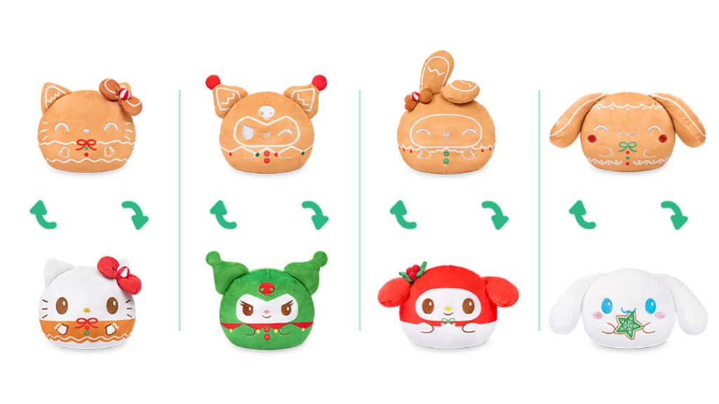 Tato kolekce obsahuje následující postavy: Hello Kitty, My Melody, Kuromi a Cinnamoroll. Plyšové figurky jsou oboustranné, na jedné straně jsou postavy ve formě perníčků, zatímco na druhé straně jsou ve svátečním oblečení. Tato speciální kolekce může být perfektním dárkem pro fanoušky, protože postavy si lze užít ve dvou různých podobách. Plyšáci jsou vyrobeni z měkkého materiálu, takže jsou nejen dekorativní, ale také příjemní na dotek. Sváteční atmosféru dále umocňuje veselý a barevný vzhled postav, který může přinést radost lidem všech věkových kategorií.