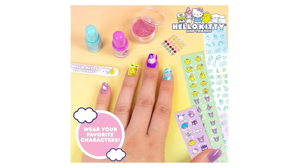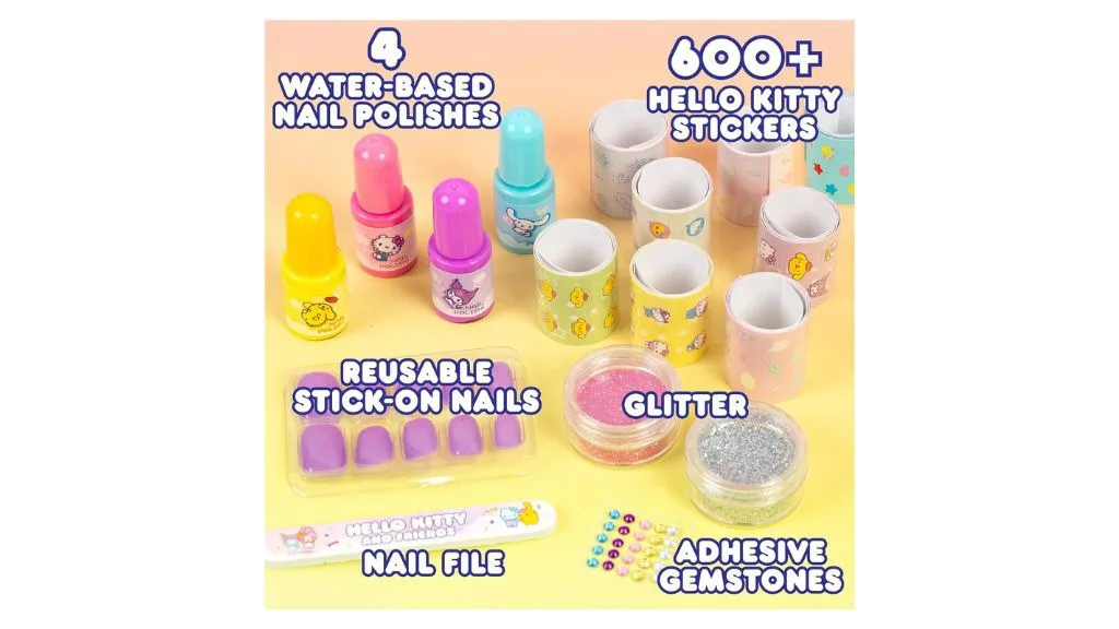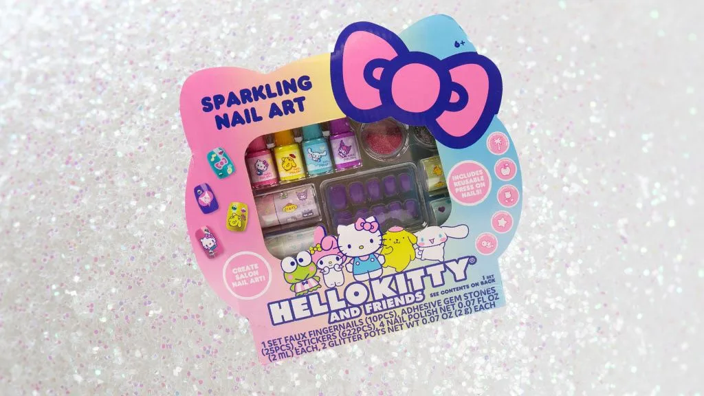 Vaše děti si skvěle užijí, když mohou ukázat svou jedinečnou manikúru a pedikúru s Hello Kitty Třpytivou sadou na nehtovou umění od Horizon Group USA.Sada na zdobení nehtů Sparkling Fun obsahuje čtyři živé, vodou ředitelné laky na nehty v barvách Hello Kitty: Hello Kitty růžová, Kuromi fialová, Cinnamoroll modrá a PomPomPurin žlutá. Dospělí ocení, že pro odstranění laku není potřeba silný odstraňovač laku na nehty. Produkt také tvrdí, že laky jsou vyrobeny z veganských formulí a čistých kosmetických složek, které neobsahují parabeny, ftaláty ani tvrdé chemikálie.