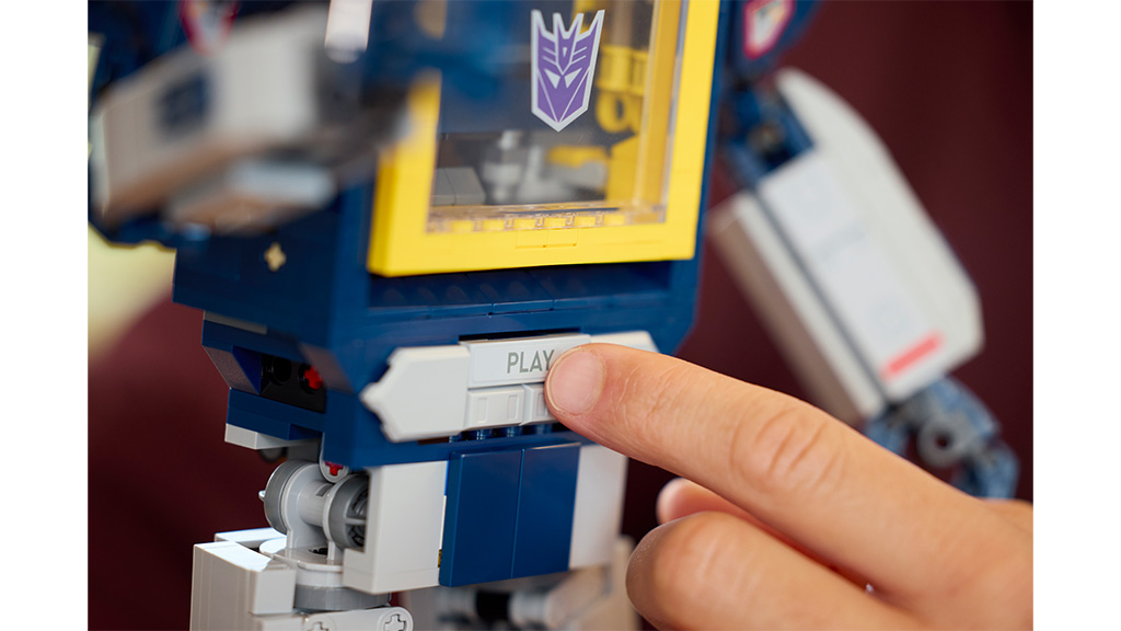 Tento sestavitelný model Soundwave, který se skládá z 1505 dílků, má pohyblivé klouby, funkční kazetový zásobník a nabízí plynulé možnosti transformace. K modelu patří dva sestavitelní společníci, zvukové efekty, tematické doplňky a také výstavní štítek. Tato detailně propracovaná sada poskytuje vzrušující zážitek nejen sběratelům, ale i fanouškům, protože realistické funkce a speciální doplňky ještě více zpříjemňují stavění i vystavování.