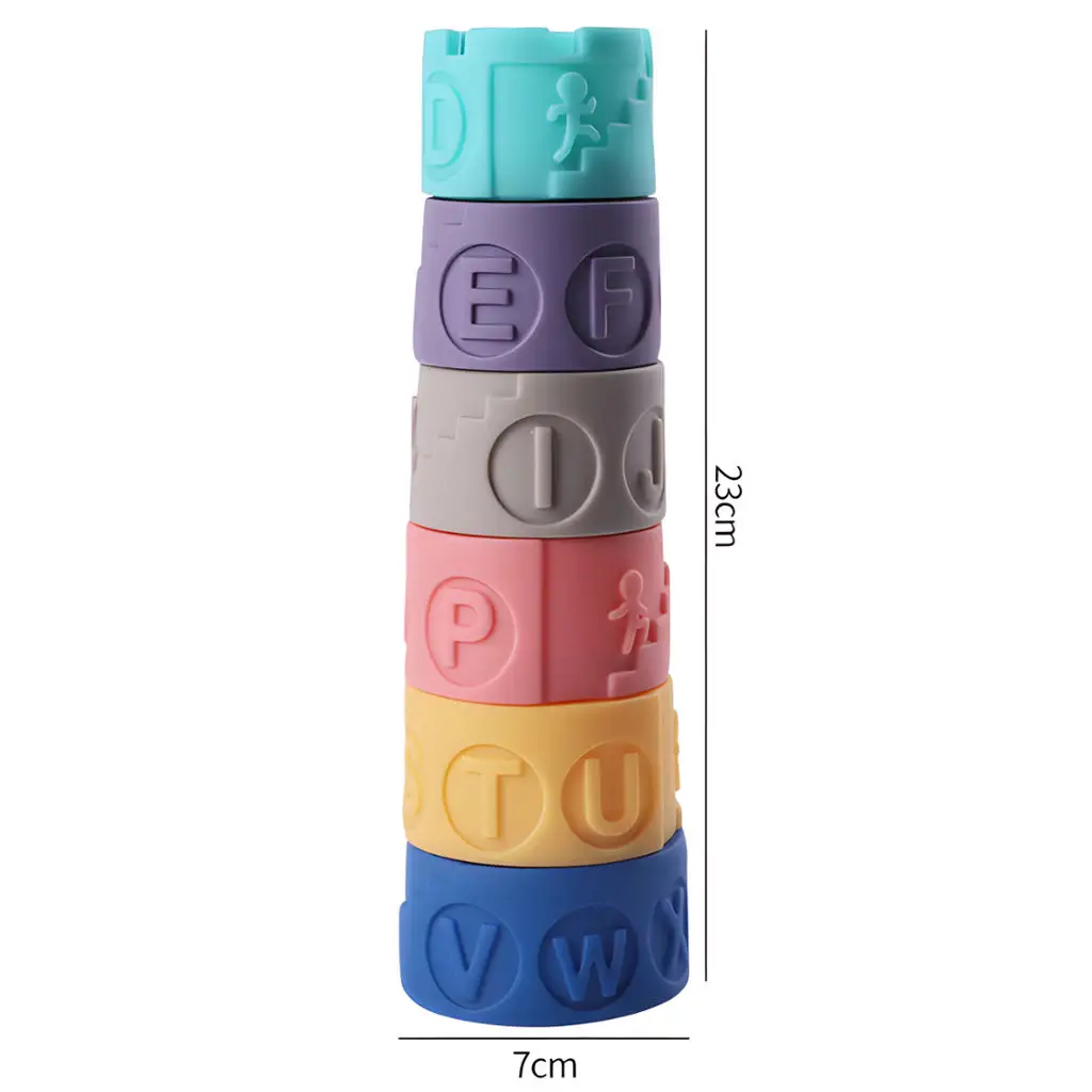 Hra na stavění měkké věže pro rozvoj hmatu je skvělou příležitostí pro vaše dítě rozvíjet kreativitu a motorické dovednosti. Sada obsahuje 6 různě barevných, měkkých válcových stavebních prvků, každý s unikátními písmenovými vzory, aby poskytoval zajímavý hmatový zážitek.