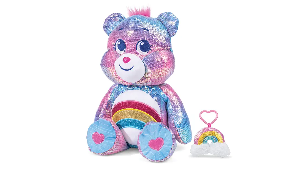 Tato limitovaná edice středně velké plyšové figurky má třpytivý duhový břišní štítek a duhové flitry. Děti mohou objímat tohoto třpytivého plyšového přítele a šířit jeho poselství radosti.