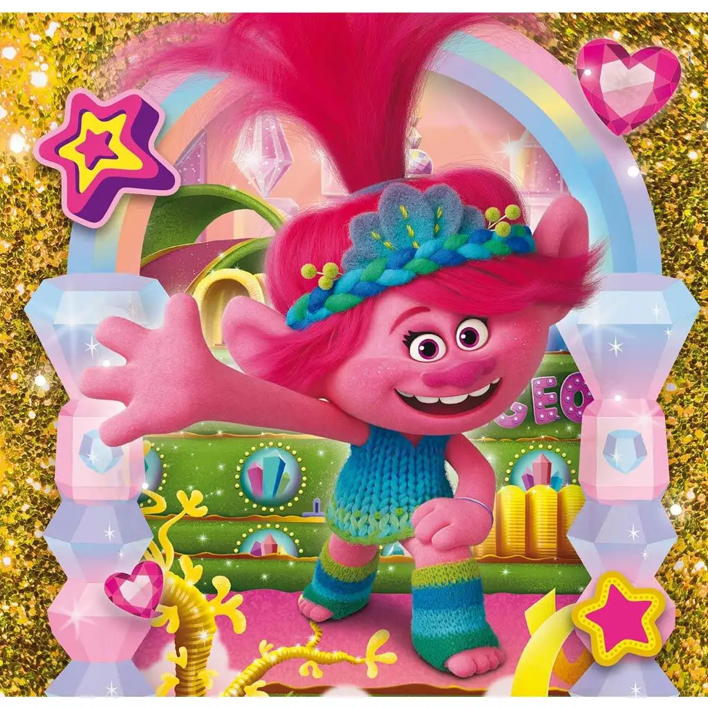 Clementoni puzzle Trollové 3. vydání s 3x48 dílky je fantastická sada skládaček, která obsahuje tři samostatné skládačky po 48 dílcích. Každý obrázek skládačky zobrazuje hlavní postavy z animovaného filmu Trollové 3. na obrázcích s třpytkami a zářivými barvami, což dělá skládání ještě vzrušující.