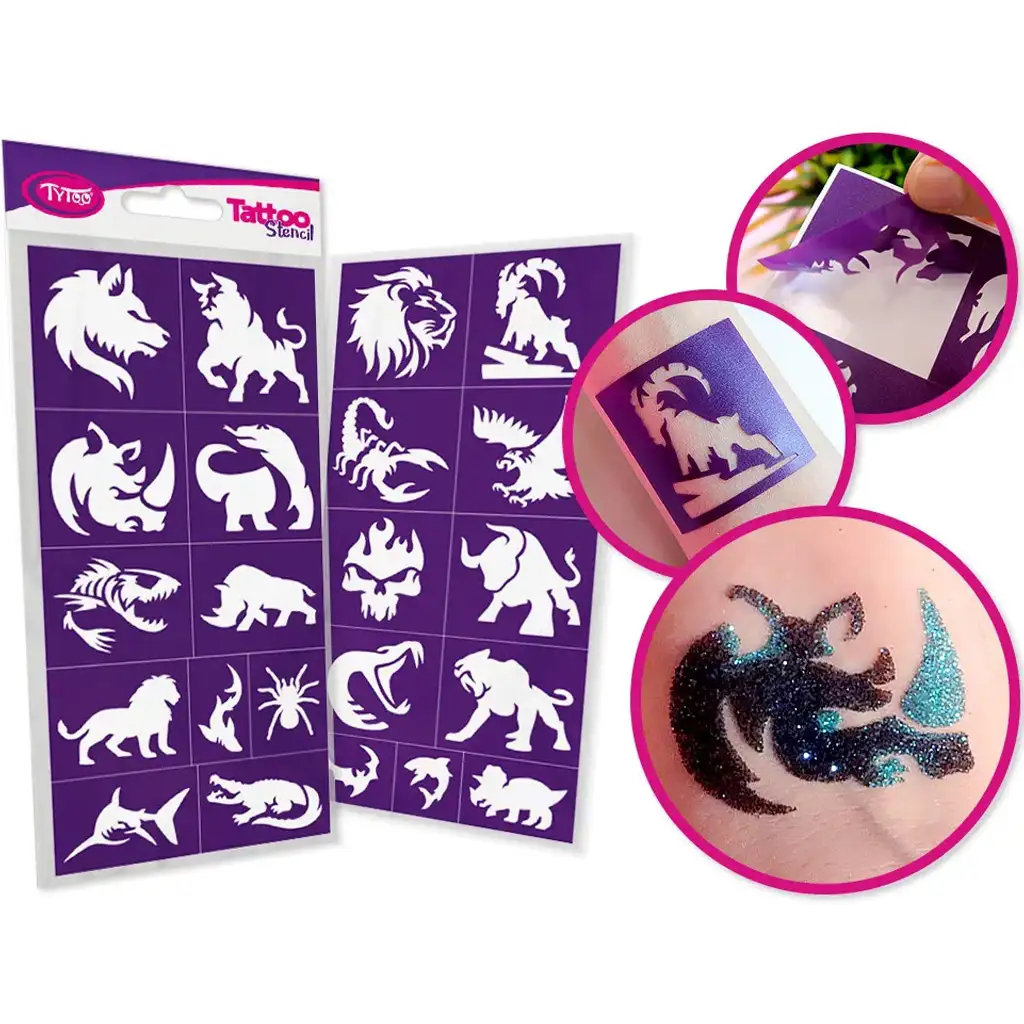 TyToo: Sada šablon na třpytivé tetování – divoká zvířata, 22 ks