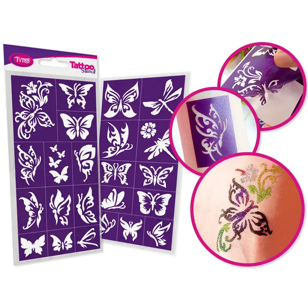 TyToo: Sada šablon na třpytivé tetování motýlci 23 ks