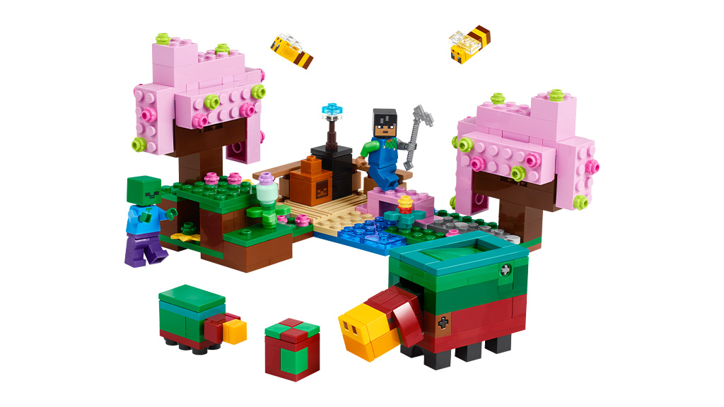 Sada Cestování pirátskou lodí se skládá ze 166 dílků a obsahuje sestavitelný vůz, oliheň, dvě pirátské figurky a dospělou LEGO Minecraft velbloudí figurku. Sada Třešňový květinový zahrada se skládá ze 304 dílků a obsahuje figurku Sunny, dva třešňové stromy a dospělé a dětské figurky Snifferů. Sada Vlčí pevnost se skládá ze 312 dílků. Děti mohou postavit celou základnu, která obsahuje pracovní stůl, tavicí pec, kovadlinu a kovářský stůl.