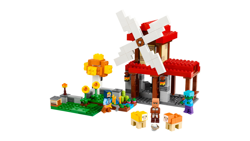 Farma s větrným mlýnem se skládá z 461 dílků a obsahuje funkční větrný mlýn, otáčející se mlýnský kámen, chléb, pečivo, figurku pastýře, ovce, tkalcovský stav a mnoho dalšího. Sada pro těžbu v Badlands se skládá z 538 dílků a obsahuje důlní vozík, TNT, osla, průzkumnou základnu, Creepera a mnoho dalšího. Nakonec Ender Drak a End Loď se skládají z 657 dílků a obsahují funkční vnitřek lodi, sestavitelný Ender Drak, Ender Rytíře a mnoho dalšího.