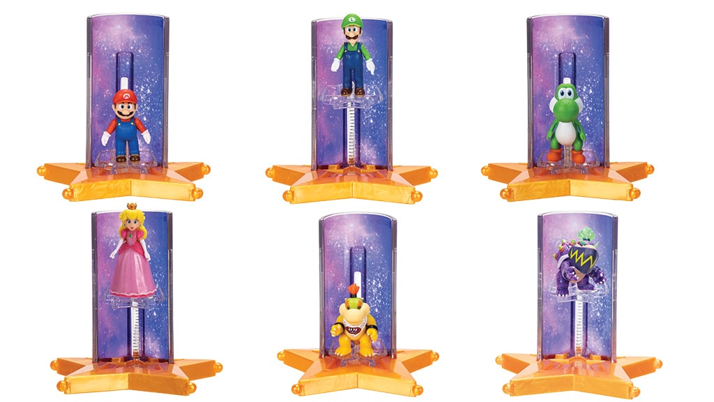 V kolekci najdete různé akční figurky o velikosti 12,5 cm, mezi nimiž jsou postavičky Mario, Luma, Yoshi, Rosalina a Bowser Jr.. Exkluzivní figurky Luigi a Wonder Bowser Jr. budou navíc dostupné pouze v obchodech Target. Děti si mohou oblíbené postavy nasbírat také jako minifigurky o velikosti 3,8 cm, součástí nabídky jsou i extra velké pohyblivé plyšové figurky, závodní auta na zpětný chod a joja svítící ve tmě. Kolekce nabízí všem fanouškům vzrušující možnost získat své oblíbené postavy v různých podobách, ať už jde o figurky, plyšáky nebo stylová autíčka.