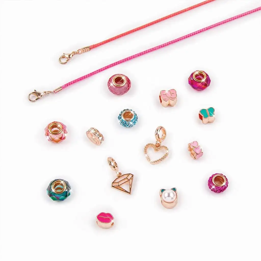 Ponořte se do kouzelného světa výroby šperků s touto sadou, která obsahuje všechny potřebné součástky pro vytvoření dvou jedinečných náramků s halo přívěsky. Sada s třpytivými růžovými odstíny a lákavým výběrem přívěsků je ideální pro ty, kteří mají rádi módní a osobní šperky. Sada se skládá ze 17 dílů a je dodávána se stylovým úložným boxem, který slouží nejen pro ukládání doplňků, ale je také skvělý pro prezentaci hotových šperků. Proces výroby je jednoduchý, takže mladí designéři šperků mohou snadno rozvíjet své manuální dovednosti a kreativitu, zatímco tvoří nádherné náramky.