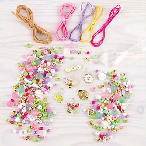 Výroba různých šperků je skvělý zážitek pro malé dívky, navíc mohou být jisté, že šperk, který si samy vyrobí, bude originální a zaručeně se k nim bude hodit. V krabici najdou kromě různých velikostí tradičních kulatých tvarů také originální korálky. S prvky a přívěsky ve tvaru sedmikrásek, listů, motýlů, včelek a berušek bude každý náramek a náhrdelník jedinečný. Kavalkáda bílých, růžových, fialových a zelených barev dodá tvému vzhledu kouzelnou dívčí, jarní atmosféru, ať už své vyrobené šperky nosíš kdekoli. Výroba šperků skvěle rozvíjí kreativitu a jemnou motoriku dívek.