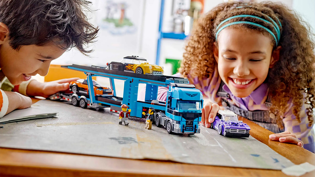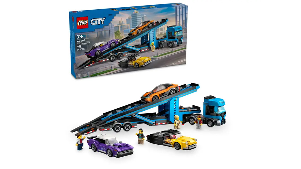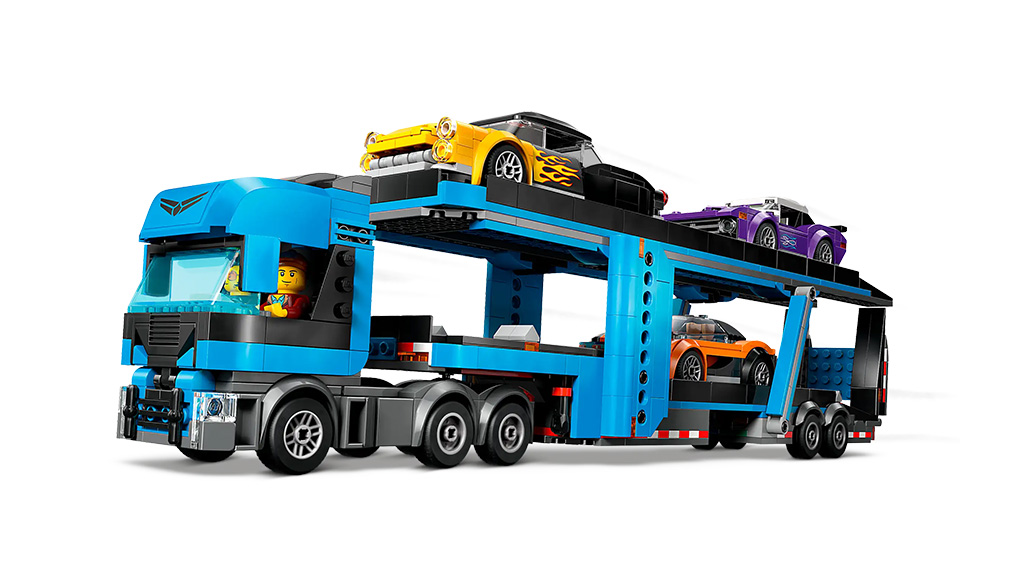 Tato LEGO City sada s 998 dílky obsahuje dvoupatrový přepravní kamion s přívěsem, tři přizpůsobitelná auta a čtyři minifigurky. Přepravní kamion je realistický a dokáže přepravit všechna tři auta najednou. Auta lze přizpůsobit výměnou dílů a mícháním barev. Děti mohou dokonce naklonit kabinu, aby se podívaly na motor.