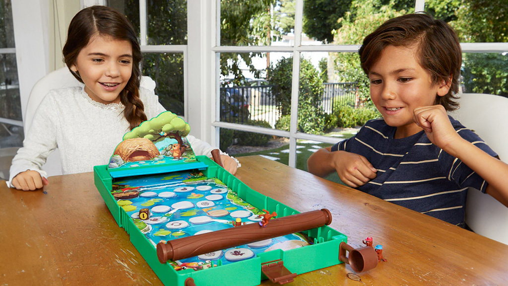 Tato vícehráčská desková hra nutí hráče soutěžit mezi sebou, aby dosáhli vrcholu desky, než se kmen skutálí a vrátí je na startovní bod. Hoď kostkou na světle hnědou stranu a skákej po kamenech, abys dorazil domů. Pokud hodíš tmavě hnědou stranu, kmen se skutálí! Speciální místa na cestě slouží jako kontrolní body a bezpečnostní body.