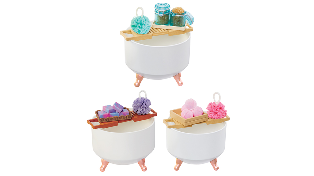 Tyto tajemné, kulovité kapsle obsahují skutečné, funkční spa produkty v miniaturizované podobě. Děti mohou používat směsné prášky, vonný olej, mísu na míchání, formy, lufu, bednu a spa držák k výrobě čtyř koupelových bomb, dvou cukrových peelingů a jednoho mýdla, které lze rozdělit na menší mýdla. Kapsle také slouží jako displej pro vanu, takže si děti mohou zařídit své vlastní malé spa, pokud produkty nepoužijí ihned.