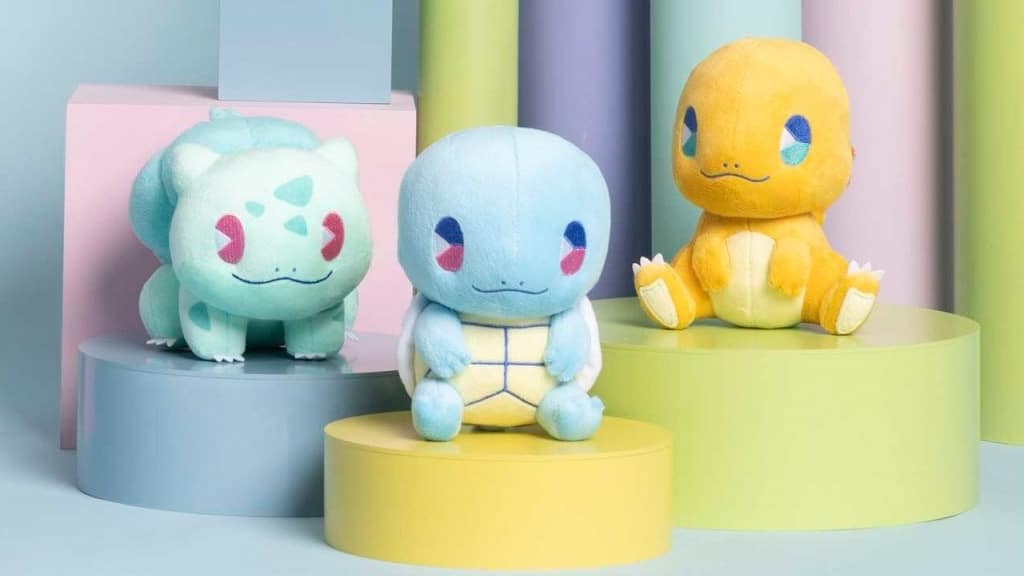 Pokémon Co. Pokémon Center Pokémon Soda Pop Plyšáci jsou měkcí, barevní plyšoví kamarádi, které inspirovalo umění F*Kaori! Kolekce Soda Pop obsahuje retro stylové plyšové postavičky z regionu Kanto, jako jsou Bulbasaur, Charmander a Squirtle. Plyšoví Pokémoni mají velké, přívětivé oči — a děti je mohou snadno nosit, objímat a hrát si s každým z nich nebo s celou kolekcí, která zahrnuje také Raichu, Togepi, Chikorita, Mew, Eevee, Jigglypuff, Psyduck, Mudkip a mnoho dalších postaviček.