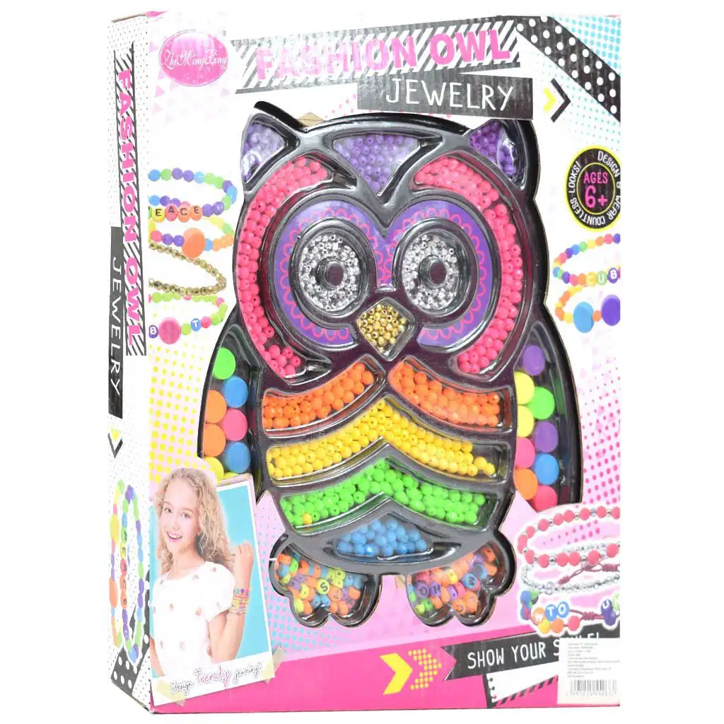 Ukažte svůj styl: Sada na výrobu šperků s korálky v soví nádobě s více než 200 barevnými korálky a doplňky. hodnocení: