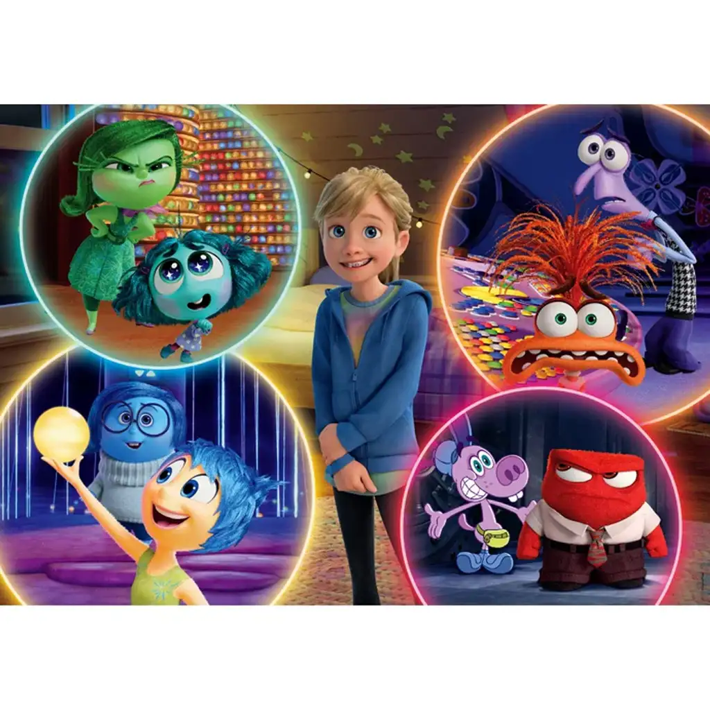 Objevte znovu barevný svět emocí s puzzle Clementoni 104 dílků V hlavě 2: Emoční koloběh! Toto speciální puzzle představuje postavy z druhého dílu oblíbeného filmu Disney Pixar v působivé, barevné kompozici, kde každá postava ztělesňuje jednu emoci. Radost, Hněv, Smutek, Znechucení a další zábavné postavy jsou opět v akci v centru myšlenek Riley – a nyní se tým rozšířil o nové emoce!