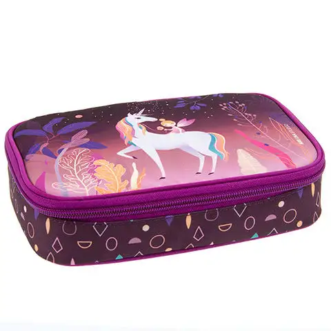 Tato praktická konstrukce pouzdra na tužky se stane oblíbenou nejen proto, že může uchovávat třicet tužek v řadě, ale také proto, že vzor jednorožce určitě získá jejich oblibu. Psací potřeby lze upevnit pomocí gumového pásku, který pomáhá udržovat pořádek a organizovat je. Celkem může uchovávat třicet psacích potřeb, stejně jako čtyři gumy nebo ořezávátka, a má také samostatnou kapsu pro další pera.