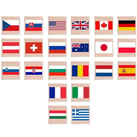 - Dřevěná paměťová hra s vlajkami