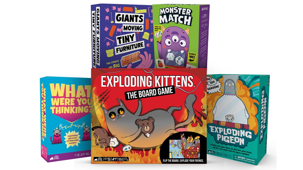 Populární hra **Výbušné kočky** letos v létě oslaví 10. narozeniny s adaptací deskové hry na základě oblíbené karetní hry. Společnost stojící za tímto chaosem přináší na rodinné herní večery čtyři nové přátele: **Co si myslel?**, **Obři pohybují malým nábytkem**, **Výbušní holubi** a **Monster Match**, což je nový člen kolekce Kitten Games. Tyto nové hry slibují vzrušující a zábavné zážitky pro všechny věkové kategorie a zaručeně oživí rodinná setkání. Desková verze Výbušných koček přidává hře novou dimenzi, což hráčům umožňuje ještě více se ponořit do herního světa. Při navrhování her hrála kreativita a humor klíčovou roli, takže všem poskytnou nezapomenutelný zážitek.Společenská hra Explodující koťata dorazí na herní police 21. července. Přehodnocená, extrémně soutěživá hra povzbuzuje hráče ve věku od sedmi let, aby závodili na konec hracího pole, zatímco používají strategické akční karty k sabotování soupeřů nebo k vyhnutí se katastrofě. Účastníci mohou také vyvolat otočení desky, které přemění všechna pole na desce, aby nastražili pasti nebo uzavřeli spojenectví. Společenská hra je vhodná pro 2-6 hráčů a trvá přibližně 20 minut.