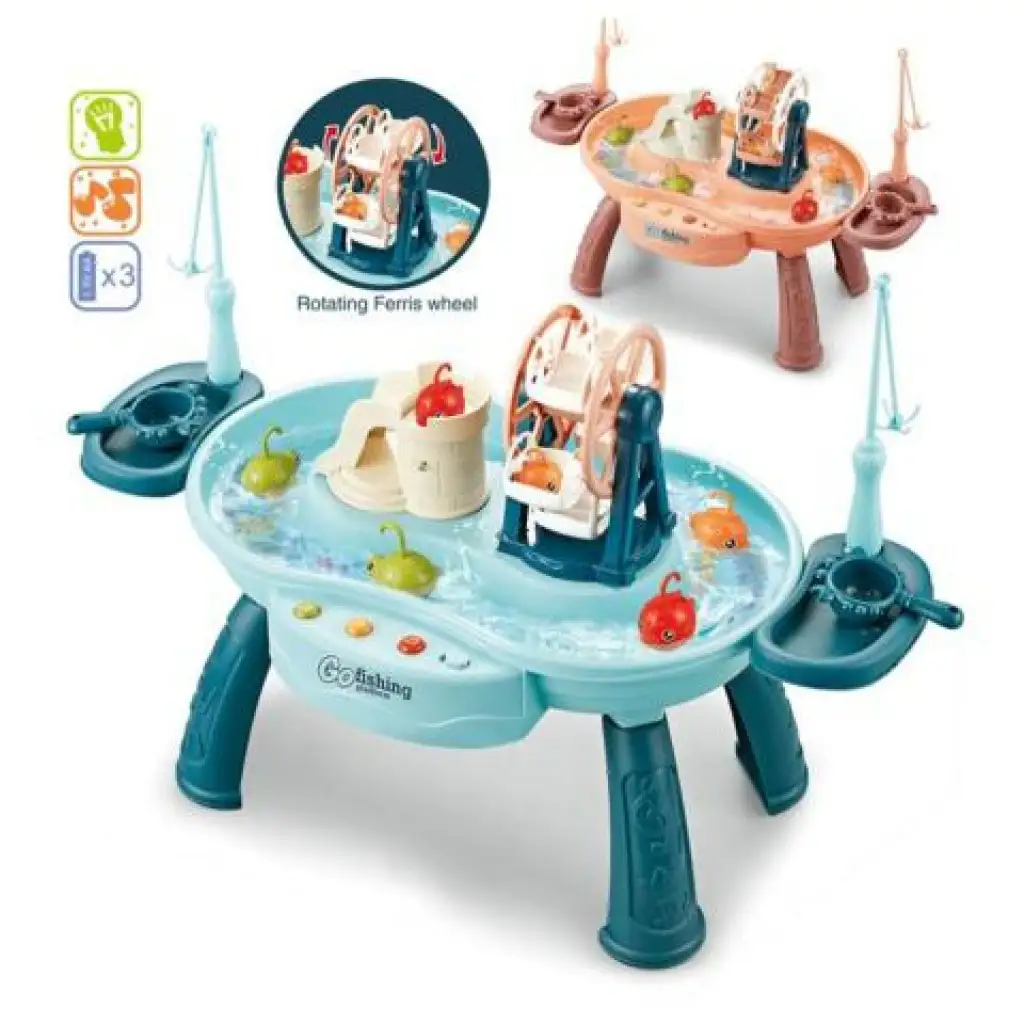 Tato super rybářská hra zaujme všechny věkové skupiny, které rády rybaří nebo se jen chtějí odreagovat a zároveň se skvěle bavit. Hra obsahuje bazén s nohama, který zajišťuje stabilní základnu, takže se nemusíte obávat, že by se během hry převrátil. Konstrukce bazénu umožňuje, aby voda s rybami proudila dokola pomocí elektroniky pro cirkulaci vody, což činí hru opravdu vzrušující, protože musíte chytat pohybující se ryby z vody. Kromě cirkulace vody hra také otáčí obří kolo, což poskytuje hráčům ještě lepší zážitek, a navíc může hrát tři různé zábavní parkové melodie. Kromě toho je ve hře také hrad, na kterém můžete stisknutím tlačítka na boku vystřelit ryby, které pak mohou sklouznout po skluzavce do vody. Pořiďte si ji a zaručeně budete mít s ní skvělý zážitek.
