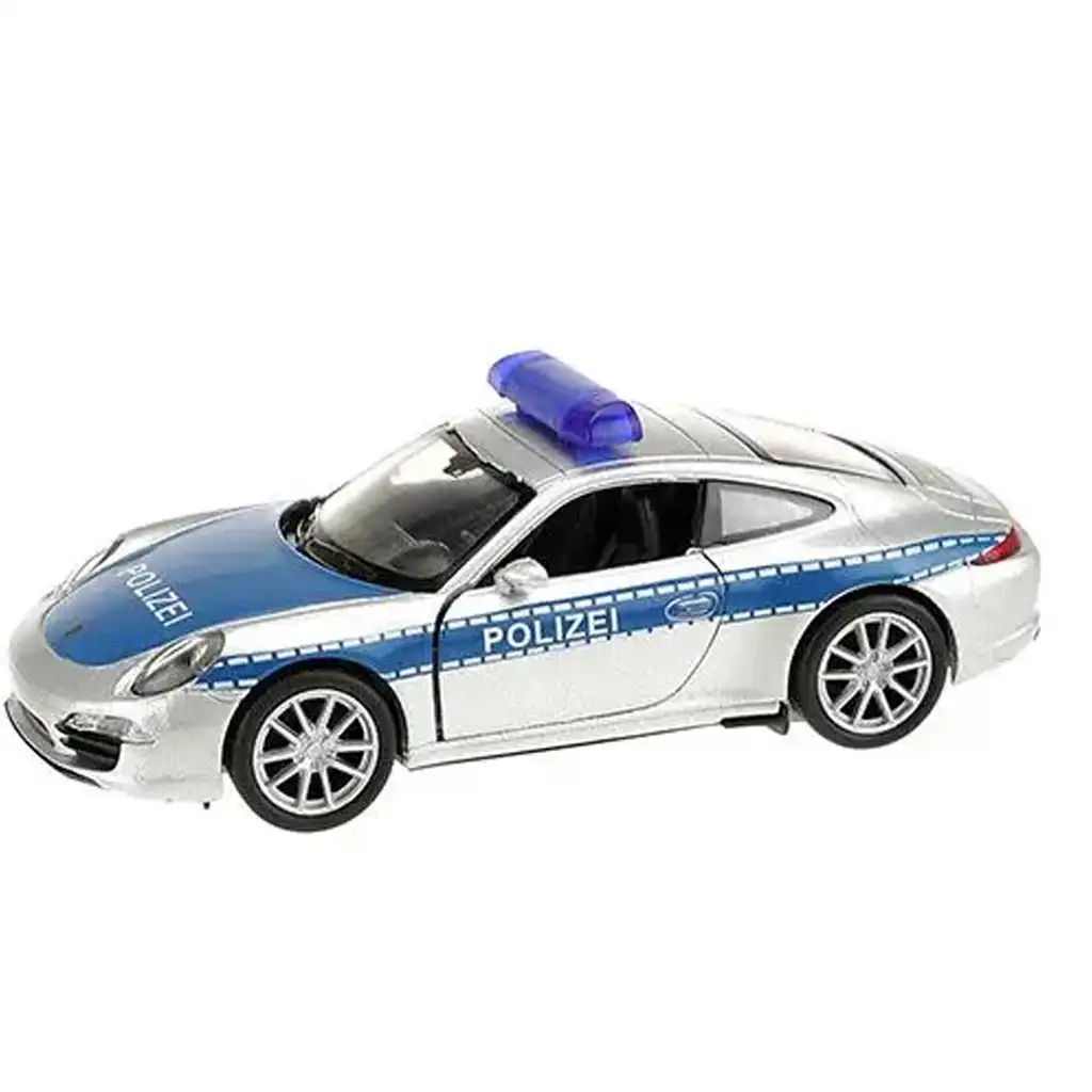 Policejní auto, které nejen pronásleduje, ale dělá to stylově! Kovový model policejního auta Welly Porsche 911 bude zaručeně jedním z nejzajímavějších kousků v autíčkové sbírce vašeho dítěte. Toto 11 cm dlouhé autíčko v měřítku 1:34 představuje legendární policejní verzi Porsche 911 Carrera S v klasickém stříbrno-modrém designu „Polizei“ s modrým majákem na střeše – přesně jako vozidla německé dálniční policie.