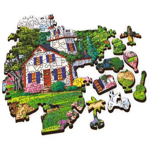 Pokud chcete oživit stěnu jednoho z vašich pokojů speciálním obrazem, pak může být tato puzzle skvělou volbou, protože na složeném obrázku je vidět maják a kouzelná zahrada, co se týče dílků puzzle, každý je vyroben ze dřeva a mezi nimi jsou i unikátní tvary jako letadlo, pivní sud nebo glóbus. Trefl Wood Craft puzzle dílky perfektně pasují a díky kompromisním, profesionálním tiskovým postupům je hotový obrázek dechberoucí ostří a barevností. Nepravidelné tvary a tematické vzory otevírají zcela novou dimenzi zážitku z puzzle. Zadní strana dřevěných puzzle dílků má dekorativní vzor, navíc v duchu ekologického uvědomění je celá sada dodávána v krabici vyrobené z recyklovaného kartonu.