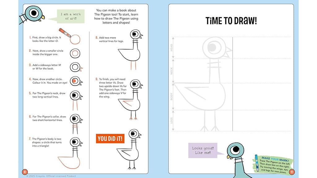 Omalovánky nabízejí skvělou možnost bez obrazovky a jsou také vynikajícími společníky na cesty, které povzbuzují děti k tvoření a používání jejich fantazie. Společnost Hidden Pigeon Company, kterou spoluzaložil slavný autor a ilustrátor dětských knih Mo Willems, nyní spolupracuje s firmou Crayola na vytvoření 80stránkové omalovánky a pracovního sešitu. Tato kniha představuje Willemsovy oblíbené postavy, Holuba, Slona a Prasátko. Omalovánka není jen zábavná, ale rozvíjí také jemnou motoriku, kreativitu a schopnost řešit problémy, zatímco se děti mohou ponořit do světa svých oblíbených postav. Je to ideální volba na delší cesty, domácí relaxaci nebo i jako dárek.Děti mohou použít oboustranné fixy k vybarvení komiksových stránek s motivem holubů. Tyto omalovánky nejsou jen zábavné, ale rozvíjejí také kreativitu a jemnou motoriku. Oboustranné fixy umožňují kreslit čáry různých tlouštěk, takže obrázky mohou být ještě pestřejší. Stránky vytvořené společností Hidden Pigeon Company nabízejí vzrušující a veselou zábavu pro všechny věkové kategorie.