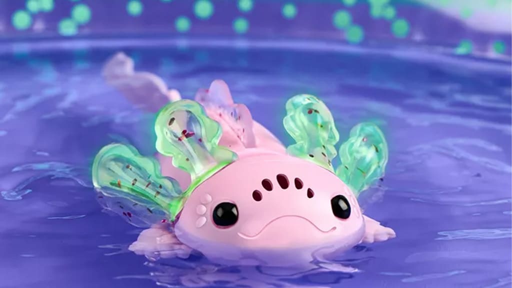 Když děti pohladí hlavu (a aktivují senzor na břiše tím, že ho drží), axolotl různými barvami signalizuje náladu dítěte. K dispozici je také průvodce barvami a náladami — modrá je ospalá, fialová šťastná, zelená bláznivá a tak dále. Když děti pohladí pouze hlavu, aniž by se dotkly senzoru na břiše, malý axolotl zazpívá píseň. Hračka se může pohybovat ve vodě i v nafukovacím bazénu.Fingerlings baby axolotl je neuvěřitelně roztomilý a reaktivní, takže děti mohou mít pocit, jako by měly skutečného mazlíčka – bez nepořádku! Děti od 5 let se mohou naučit, jak se podělit a střídat se v hlazení hračky, sledovat pohyby ocasu, poslouchat zvuky a objevovat, v jaké náladě je axolotl. Rodiny mohou interagovat s hračkou, jak plave v bazénu, nebo se starat o svého přítele, aniž by musely přidávat vodou naplněný bazén do herního času.