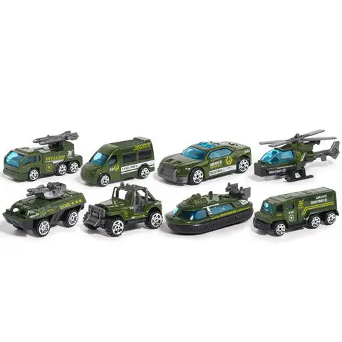 Tento vozidlový balíček je skvělou volbou pro malé kluky, protože sada obsahuje osm kusů odvážných vojenských vozidel, s nimiž lze vymýšlet a hrát opravdu vzrušující dobrodružství, ale většinu z nich lze také otestovat na závodních dráhách. V tomto balíčku najdete osm skvělých vojenských vozidel. Mezi klasicky olivově zelenými bojovými prostředky mohou děti najít vrtulník, vznášedlo, obrněný transportér a otevřené terénní vozidlo. Díky detailnímu zpracování a malbě jsou autíčka stejná jako skutečná.
