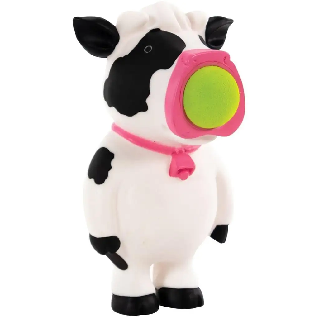 Tato hra není jen zábavná, ale také rozvíjející: zlepšuje koordinaci rukou a očí, schopnost zaměřování, zatímco děti radostně pobíhají, smějí se a znovu a znovu „lechtají“ kravičku, aby vystřelila další míček. Díky roztomilému vzhledu kravičky, růžovému nosu, malému zvonečku a přátelskému výrazu se stane okamžitě oblíbenou – ať už při hře o samotě, nebo ve skupině.